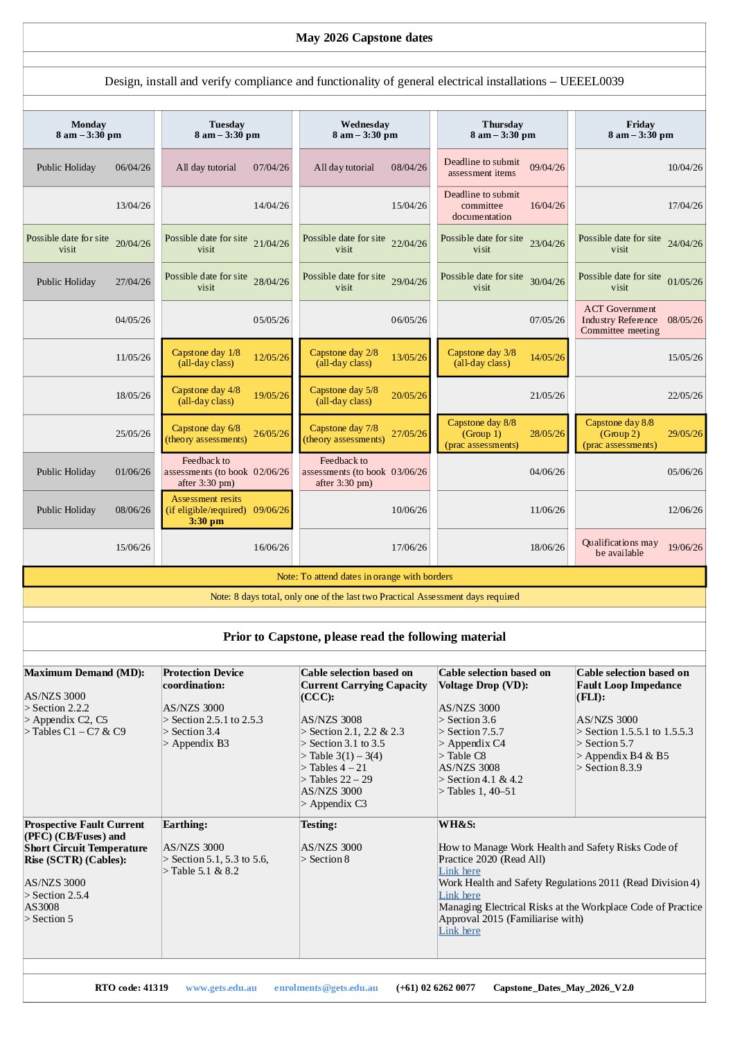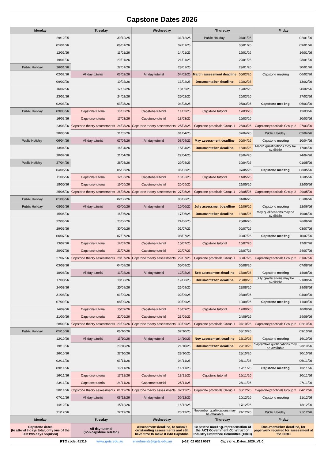 Capstone Dates 2026