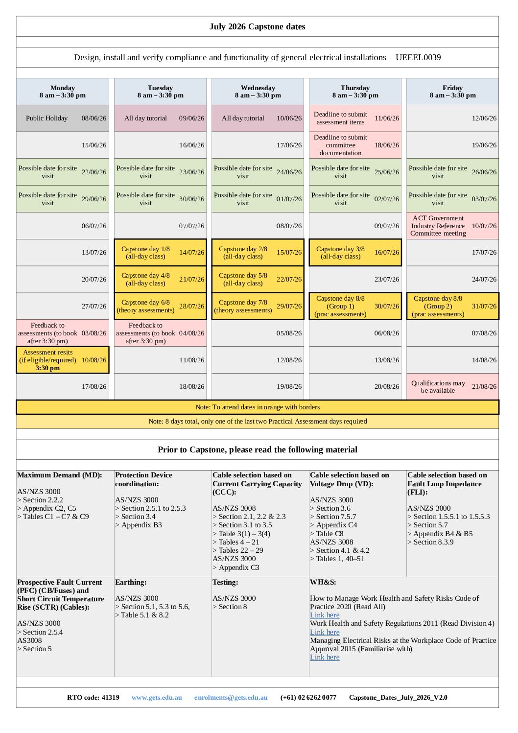 Capstone Dates July 2026