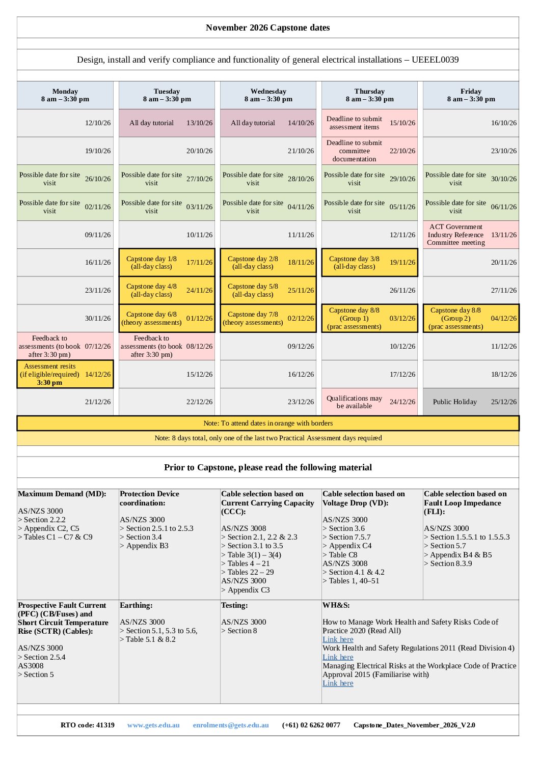 Capstone Dates November 2026