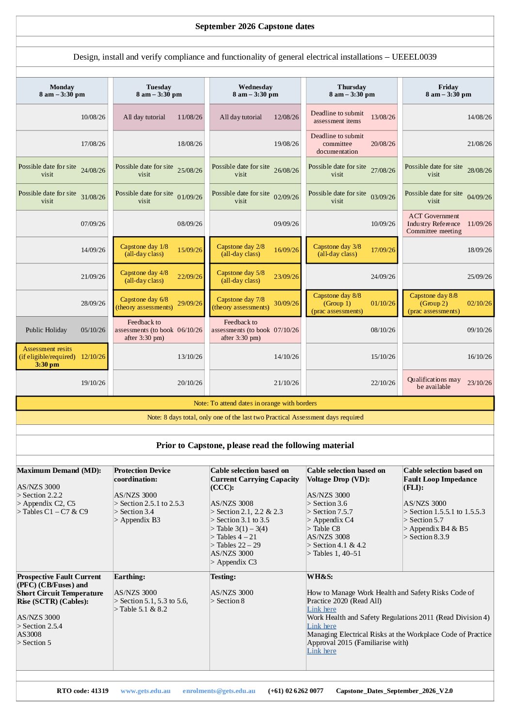 Capstone Dates September 2026