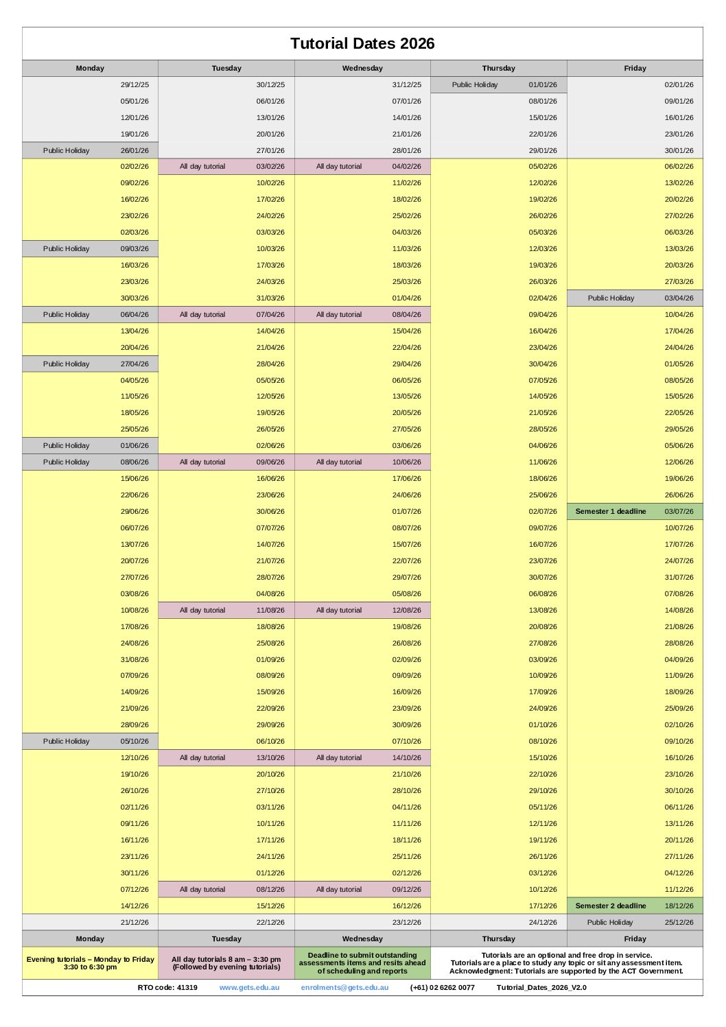 Tutorial Dates 2026